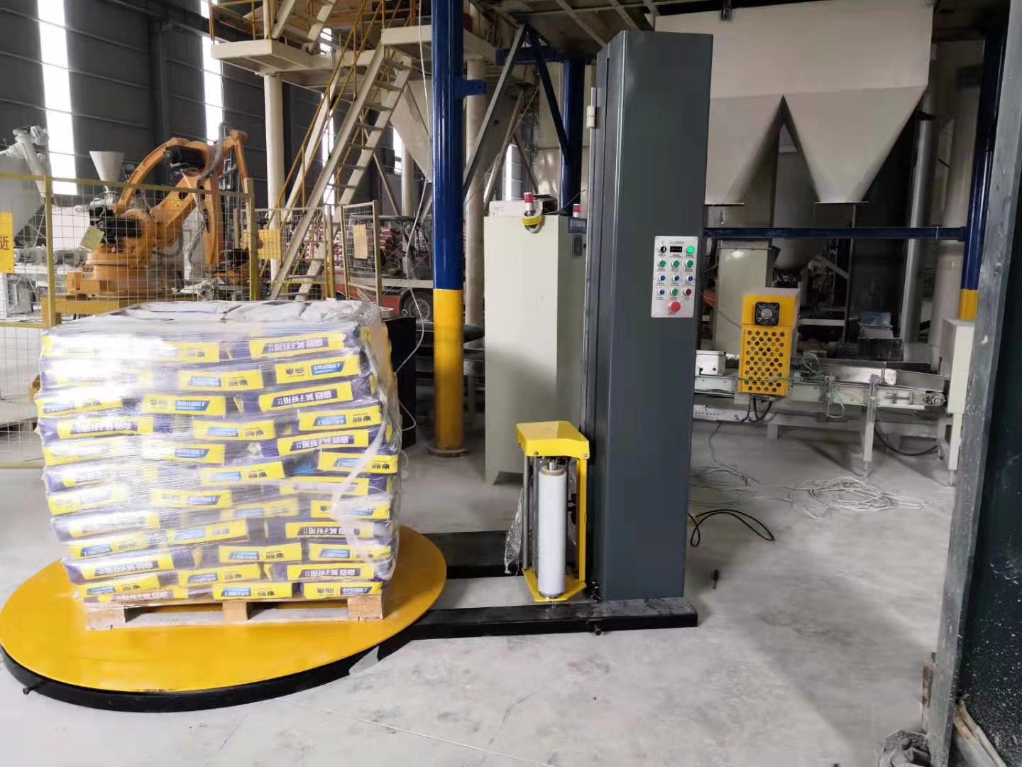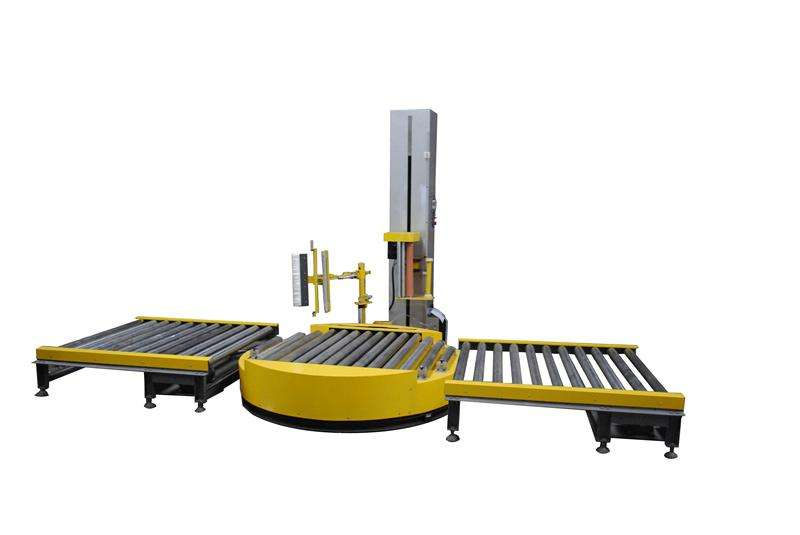 在線纏繞機以拉伸膜/纏繞膜,作為包裝材料,可應(yīng)用于托盤/棧板包裝,將纏繞機對托盤貨物商品進行包裝,利用拉伸膜自身具備的回縮性和自粘性將貨物和托盤束縛成整體,起到固定作用,因而,貸物不會發(fā)生散包和倒塌現(xiàn)象。