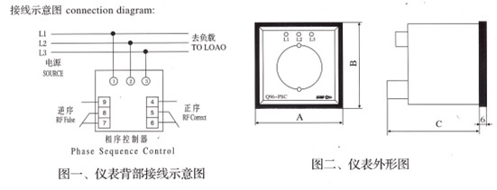 2. 當(dāng)接入相線為正序時,批示燈亮點按順時針旋轉(zhuǎn),同時正序繼電器延時吸合;反之,則指示燈亮點按逆時針旋轉(zhuǎn),同時逆序繼電器延時吸合;兩繼電器有電氣連鎖。